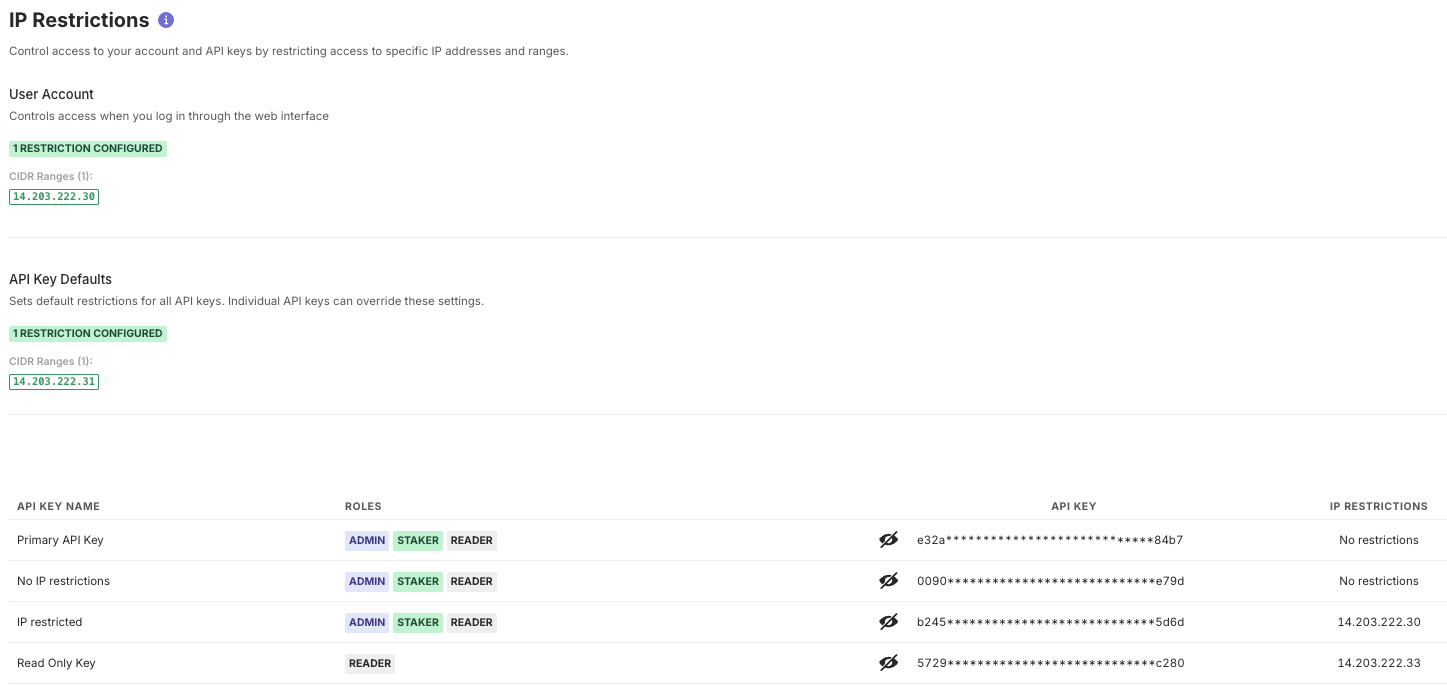 You can now configure IP whitelists from the settings page on the Pier Control Centre. The following levels of restrictions can be enabled: